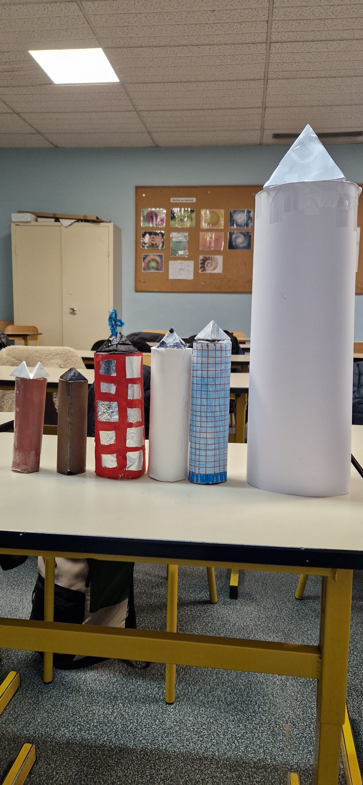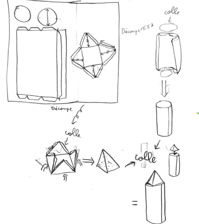- Cette maquette est composée d’un cylindre de révolution surmonté d’une pyramide régulière à base carrée.