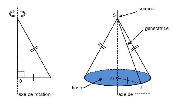 Il est dit de révolution car il peut s’obtenir en faisant tourner un triangle rectangle autour d’un des côtés de son angle droit.