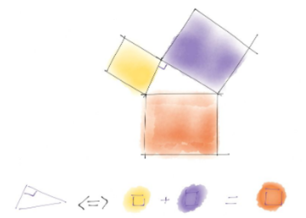 alors l’aire du grand carré construit sur l’hypoténuse est égale à la somme des aires des deux autres carrés,