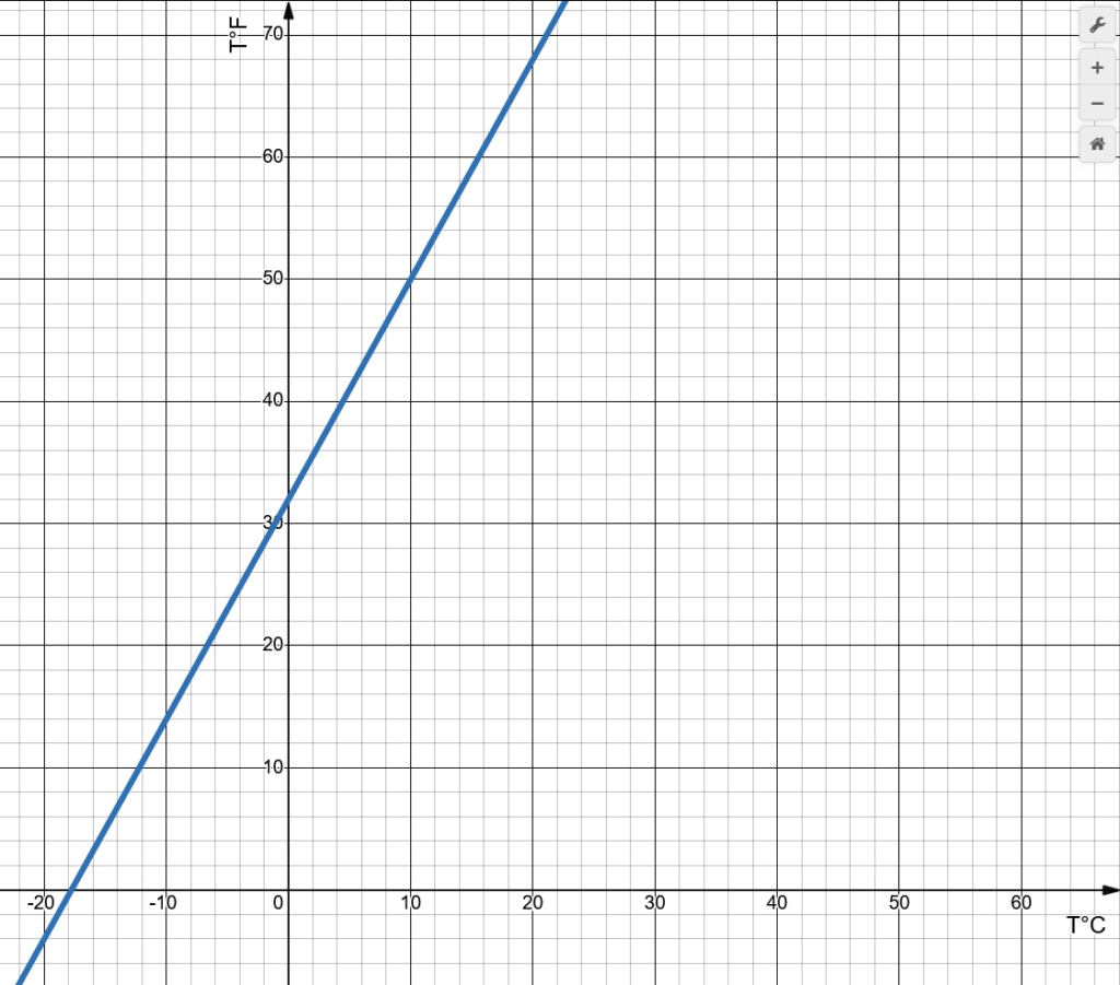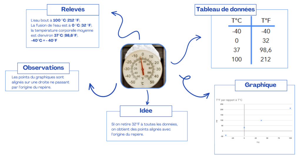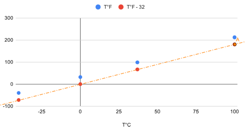 A partir de cette image, déterminer la formule pour convertir les degrés Celsius