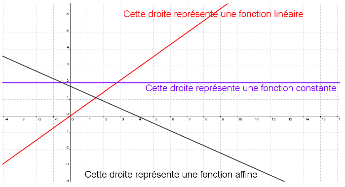 - Si la droite passe par l’origine du repère. C’est une fonction linéaire.