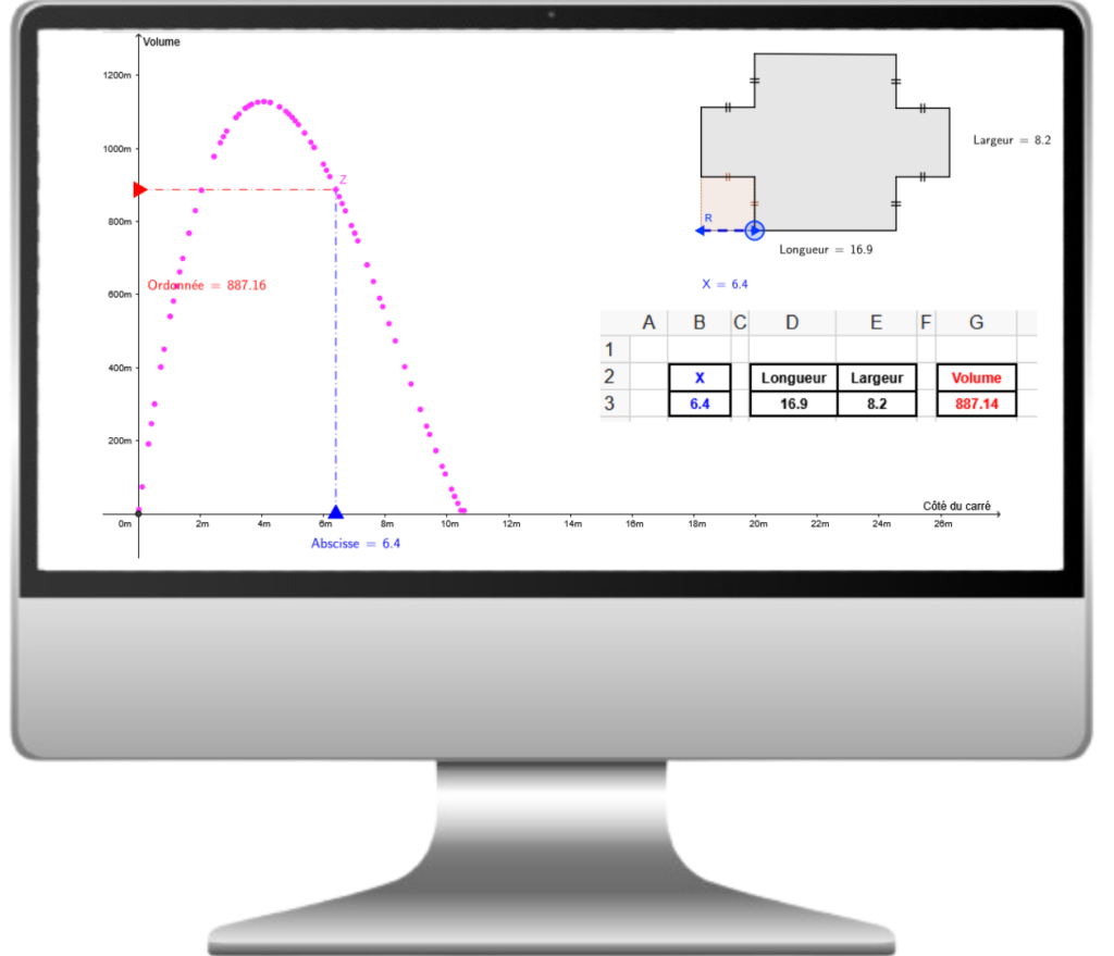 Voici l’écran de modélisation réalisée à l’aide de géogebra.