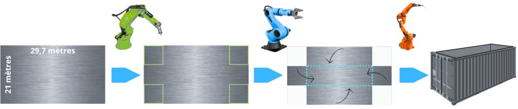 Pour fabriquer un container, une entreprise découpe, plie et assemble une tôle rectangulaire.