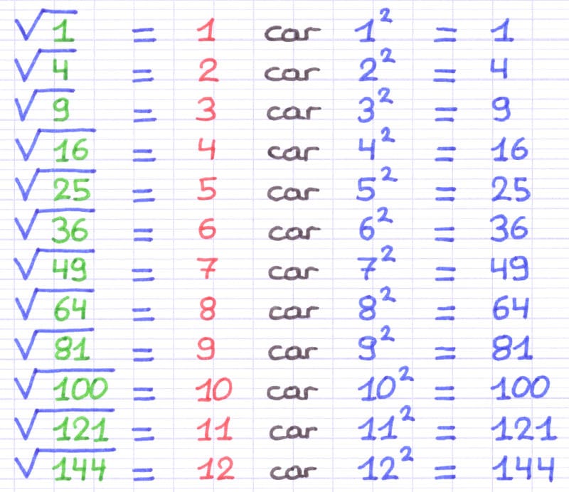 est la mesure du côté du carré d’aire 9 et = 3 car 3 x 3 = 9.