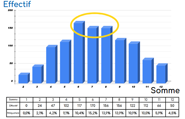 Approche fréquentiste du jeu des deux dés